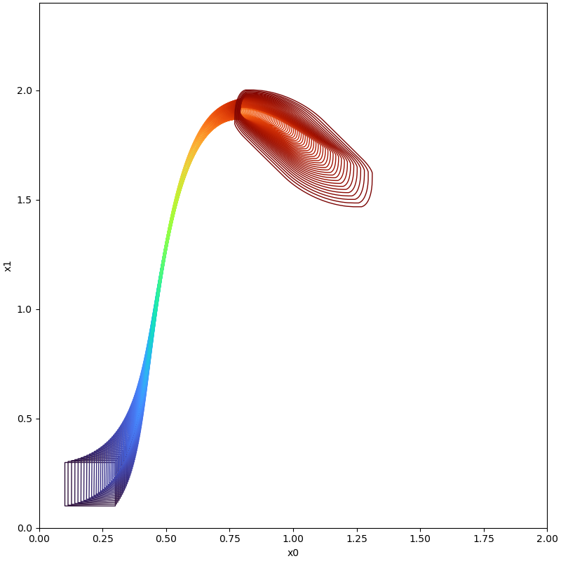Two modes of computation are supported by the tool for reachable sets. One mode is to compute the reachable set of evolved states using the entire initial set in a set propagation manner, while the other mode is to compute the reachable set of evolved states based on the boundary of the initial state set.