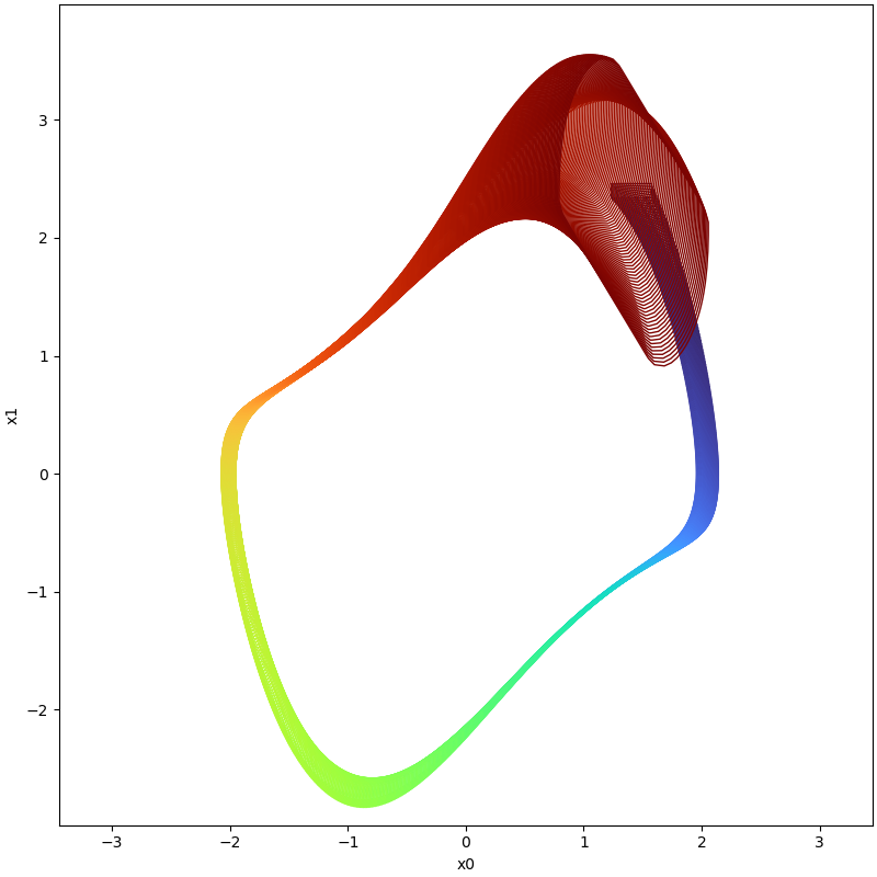 dxdt[1] = mu * (1 - x[0] ** 2) * x[1] - x[0] + u[0]